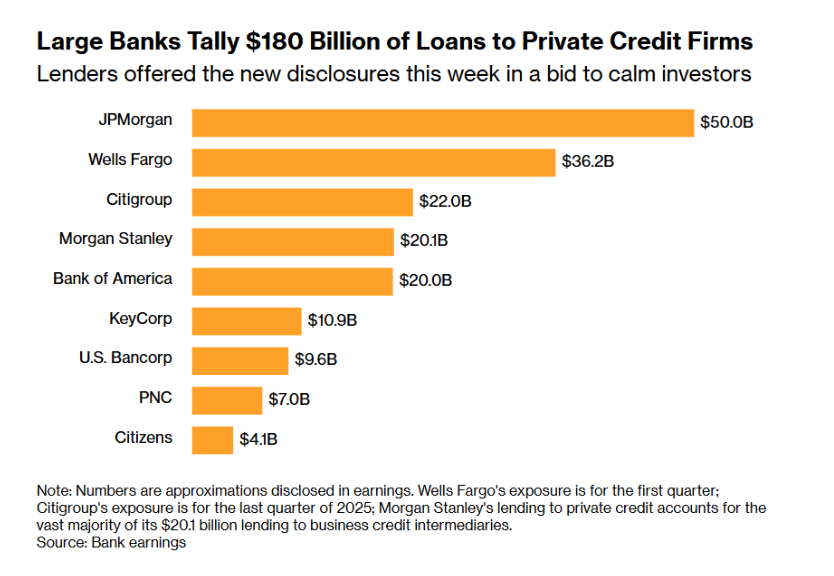 For years, the precise scale of Wall Street’s exposure to private credit was a matter of estimates and inference. This week, under pressure from investors and the Federal Reserve, the major banks disclosed it directly.